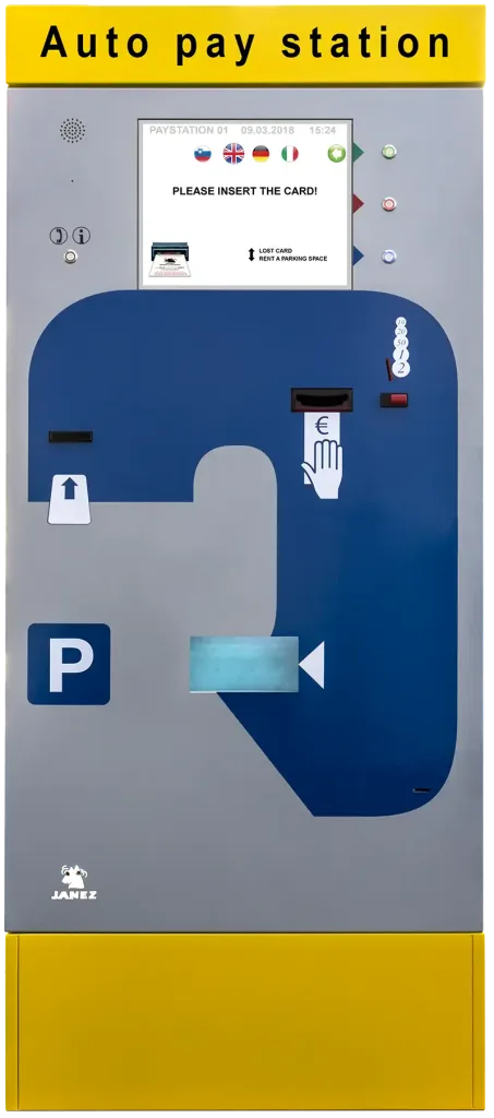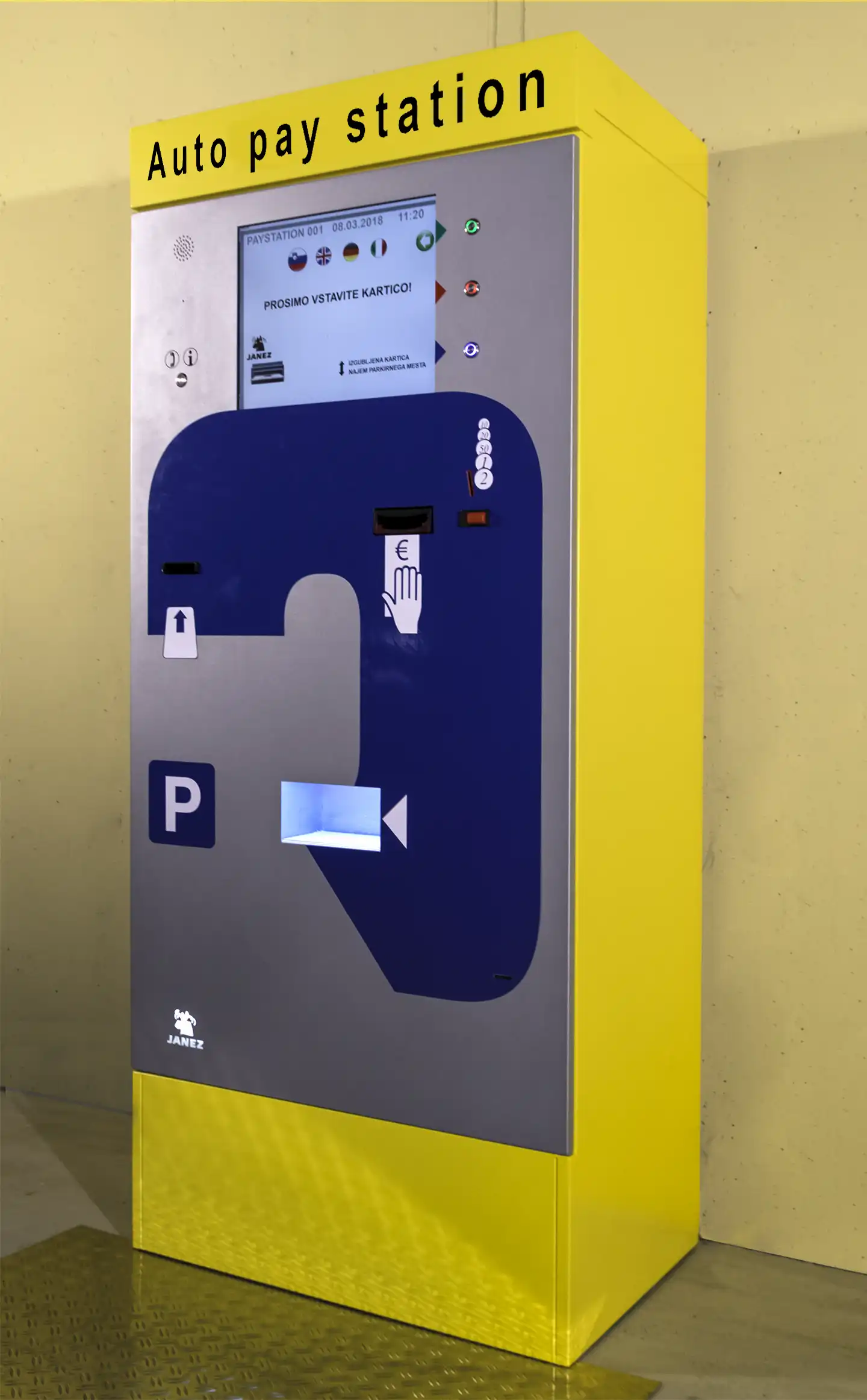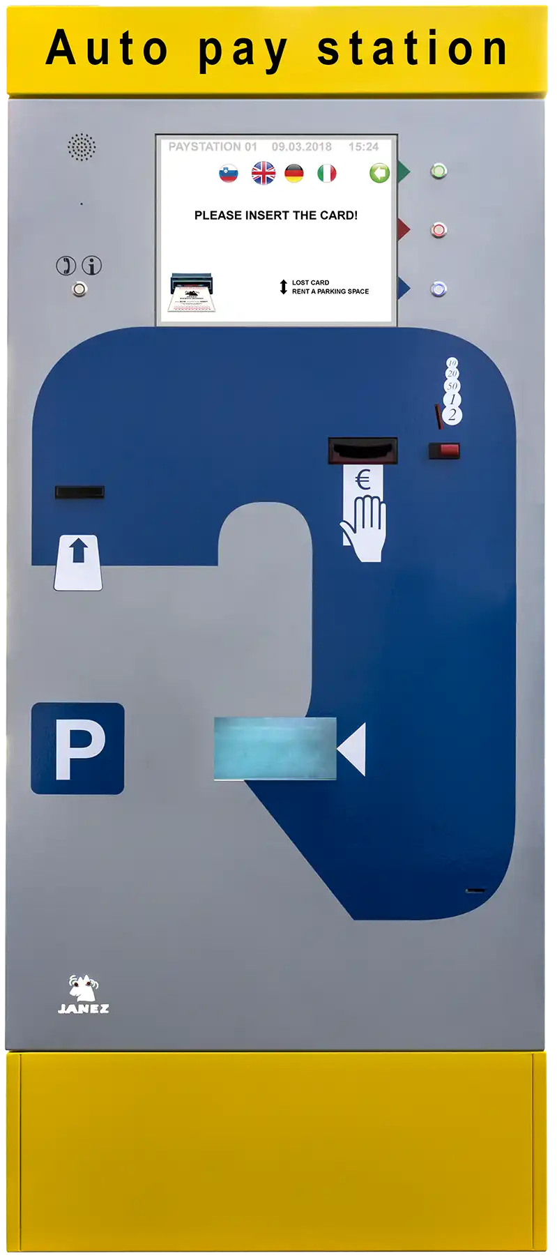 Drastic reduction in operation cost is one of the main advantages of this parking solution. The auto pay station recycles all received coins and one nomination of banknotes to be returned to customers for change of the overpaid amount. Because the system uses mifare reusable plastic parking cards users can buy a monthly parking ticket or new card (lost card) right out of the auto pay station, that significantly simplifies things for users and parking managers. The number of parking cards available for monthly parking can be adjusted to the size of parking lot and if the user does not pay for parking in time, the card automatically expires. It receives and issues mifare parking tickets each one reusable for up to 10.000 times. It can operate in offline or online mode, because the information carrier is the mifare plastic parking card, which can be used for daily or permanent parking basically it is all you need for parking in one machine. The software also enables online receipt connection to the tax office if required by law. It is very user friendly because the parking cards can be inserted either way user desires, there is no worry about the weather or other damages to the parking ticket. Simply put the system is innovative, low cost, autonomous, reliable and practical solution for all your modern parking needs.