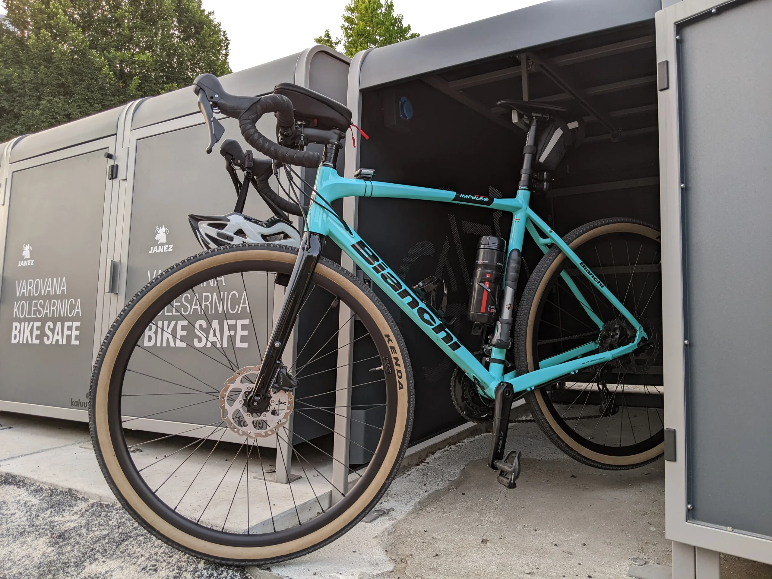 - odpiranje vrat kolesarnice preko aplikacije Kaluu, ključa ali NFC kartice;